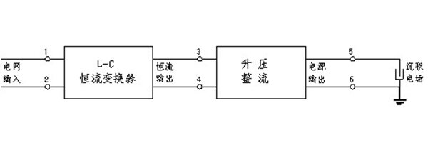 電網(wǎng)輸入的交流正弦電壓源,通過L-C恒流變換器,轉(zhuǎn)換為交流正弦電流源,經(jīng)升壓、整流后成為恒流高壓直流電源給沉積電場供電。